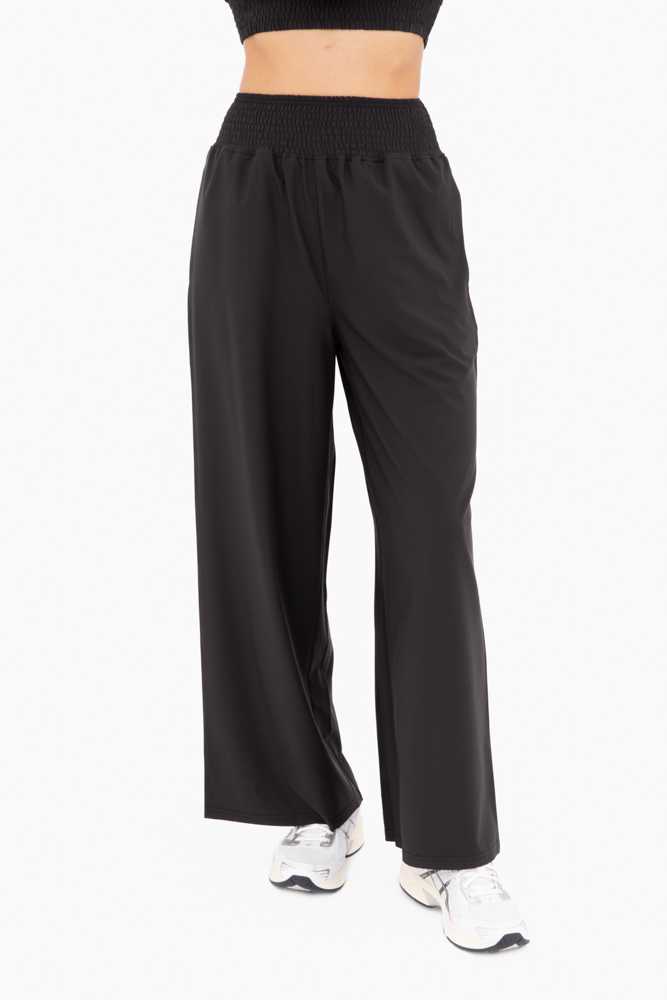 Elevate your style with our relaxed fit, wide-leg pants. Featuring a wide smocked waistband for comfort and versatility. Perfect for effortless chic looks.