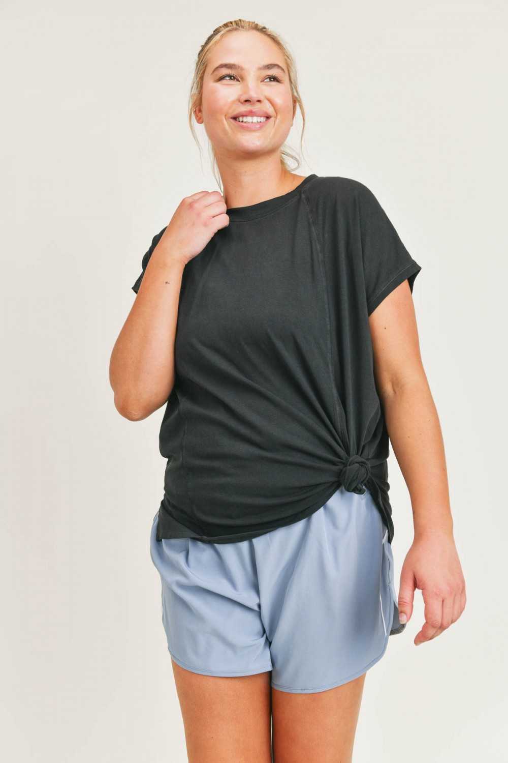 Breathable and durable, this tee should be a staple in every wardrobe. It was constructed from pima cotton (with a bit of spandex added) and features swoop sleeves (a cross between Dolman and Raglan) and a notch on each side.